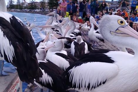 在黃金海岸地區,野生鵜鶘(大嘴鳥)的餵食秀是項獨特的體驗。海鮮市場的工作人員會將處理魚類後剩餘的魚頭和魚骨餵食給聚集而來的鵜鶘。這些鵜鶘常在餵食前便已聚集等待。由於鵜鶘體型龐大,接近時請保持適當距離,注意安全。