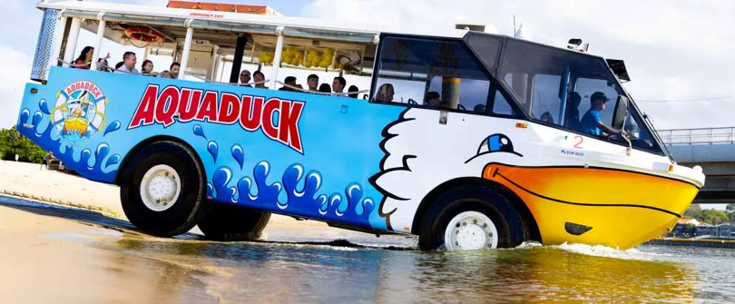 Aquaduck 是澳洲黃金海岸獨特的水陸兩用觀光體驗,結合城市導覽與水上巡航,適合各年齡層的遊客。首先在市區道路上行駛,途經著名的海灘、俱樂部等地標。隨後會展開水上巡航,讓遊客從水面欣賞黃金海岸的壯麗景色和海濱住宅。