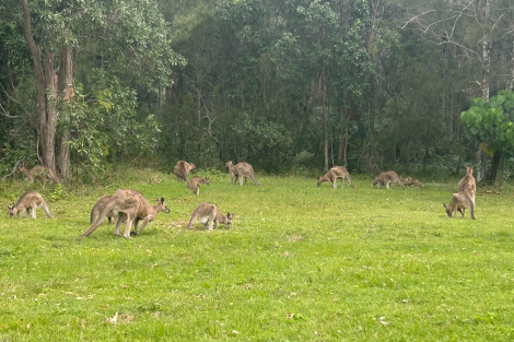 庫姆巴巴自然保護區是觀賞野生袋鼠的絕佳地點。這片保護區涵蓋多樣生態系統,為動物們提供了理想棲息地。遊客可以在自然環境中近距離觀察袋鼠的活動。午後,大片草地上常可見數百隻袋鼠出來覓食,,構成一幅生動的自然畫面。