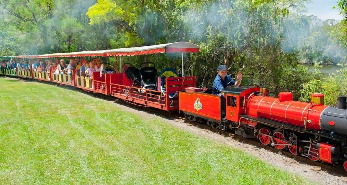 園區位於澳洲黃金海岸,遊客可以近距離接觸無尾熊、袋鼠與塔斯馬尼亞惡魔,也能親手餵食成群的彩虹吸蜜鸚鵡,看著牠們停在肩上、手臂上熱情撒嬌。園區內有森林步道、也提供了復古小火車以及精彩的野生動物表演與飼育員解說。
