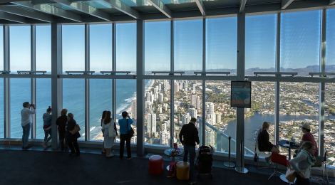 位於 Q1 大樓第 77 和 78 層的天頂瞭望臺,相當230 公尺高處、是澳洲唯一直臨沙灘的觀景台,提供 360° 無死角的絕美視野 。觀景台搭乘世界級高速電梯僅需 43 秒,即可直達高空,俯瞰遼闊的太平洋海岸、拜倫灣、布里斯本。