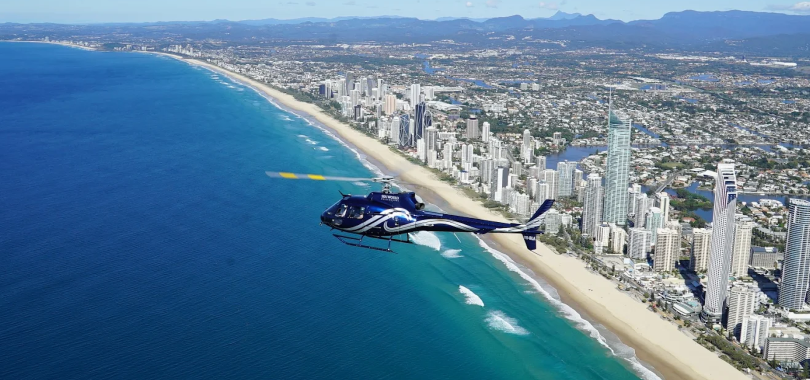 搭乘直升機是黃金海岸最令人難忘的空中體驗之一。從天空俯瞰黃金海岸壯麗的海岸線、綿延不絕的沙灘、湛藍無際的太平洋與高樓林立的衝浪者天堂市景。飛行過程平穩舒適,讓旅客深刻感受飛越天際的震撼與自由。
