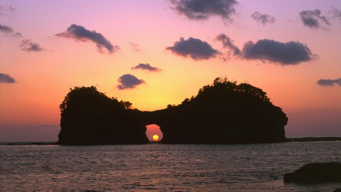 乘坐快速電梯從地上到地下36米的洞窟細看究竟。太平洋濤駭浪削塑而成2公里長、60公尺高的岩壁,滿潮時噴出激浪的潮吹岩令人深感大自然之偉大。日本平安時代,成了熊野水軍的水寨,二方爭奪經過也促進了日本鎌倉時期的開啟。