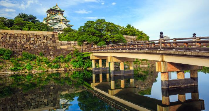 又稱「金城」或「錦城」。最初的大阪城由戰國三傑之一的豐臣秀吉(另二傑為織田信長、德川家康)所建造,於1583年在石山本願寺的原根據地上建造。雖是近代重新建造起的城郭,但對於日本歷史有著精神性的象徵。