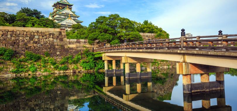 又稱「金城」或「錦城」。最初的大阪城由戰國三傑之一的豐臣秀吉(另二傑為織田信長、德川家康)所建造,於1583年在石山本願寺的原根據地上建造。雖是近代重新建造起的城郭,但對於日本歷史有著精神性的象徵。
